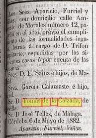 Montoto Vigil incluye a Tomás de la Calzada ( hacia 1855, en calle Pajaritos ),